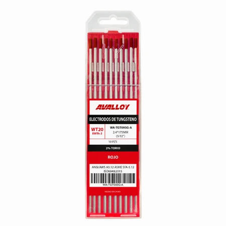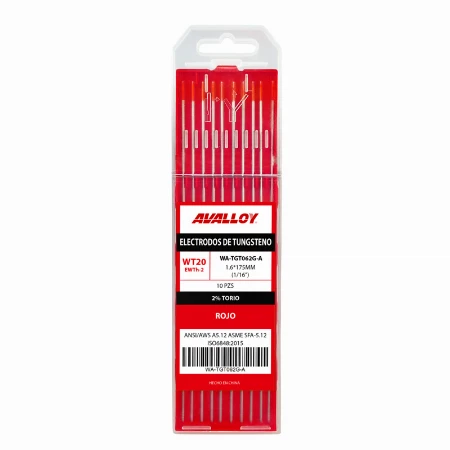 ELECTRODO DE TUNGSTENO AL 2% THORIO ROJO WT20/EWTH-2