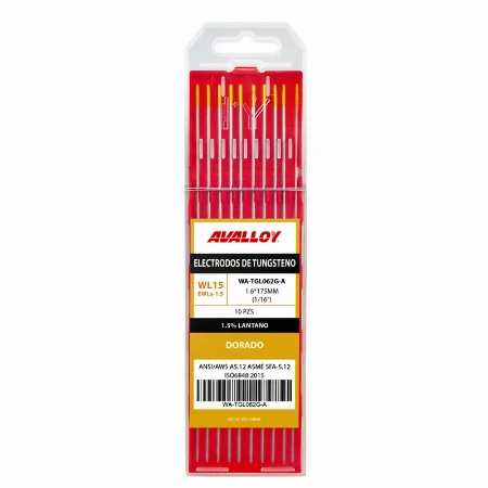 ELECTRODO DE TUNGSTENO AL 1.5% LANTANO DORADO WL15/EWLA-1.6